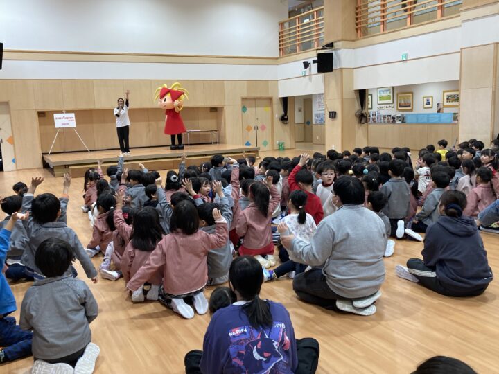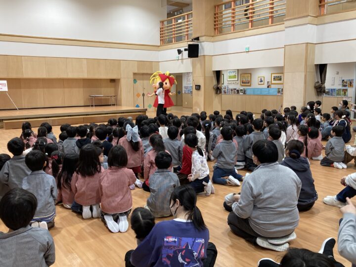 今日はエミナの方が来て、リボンナポリンのリボンちゃんのイベントを行いました。