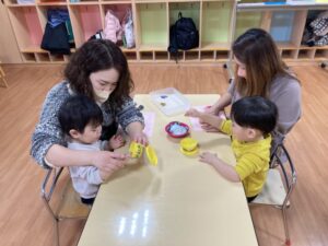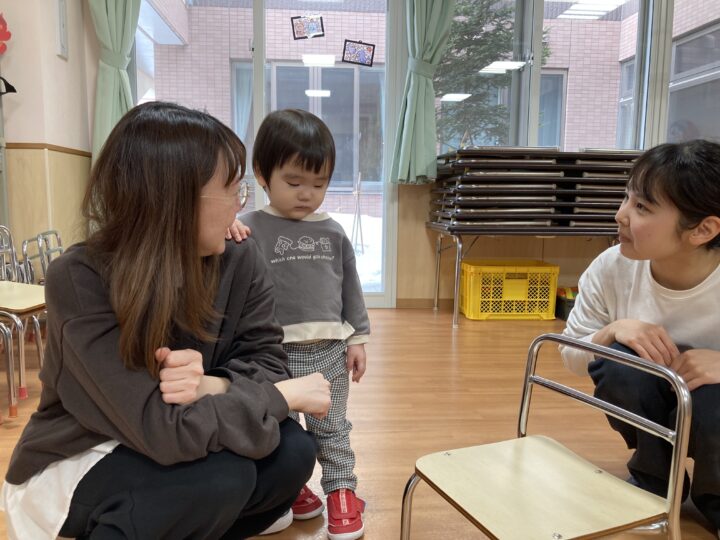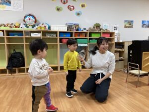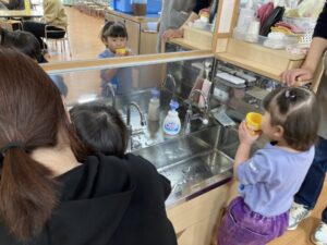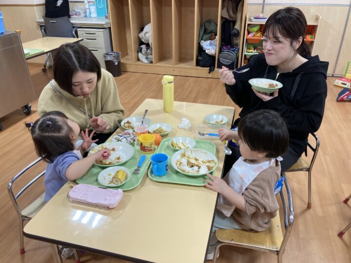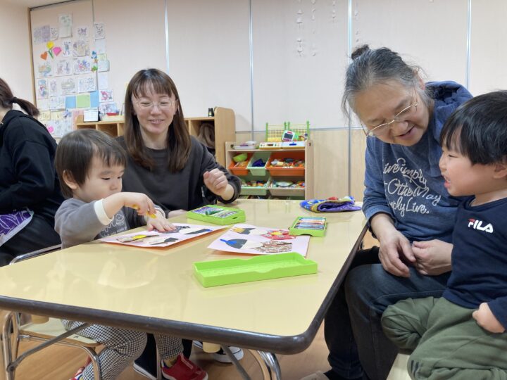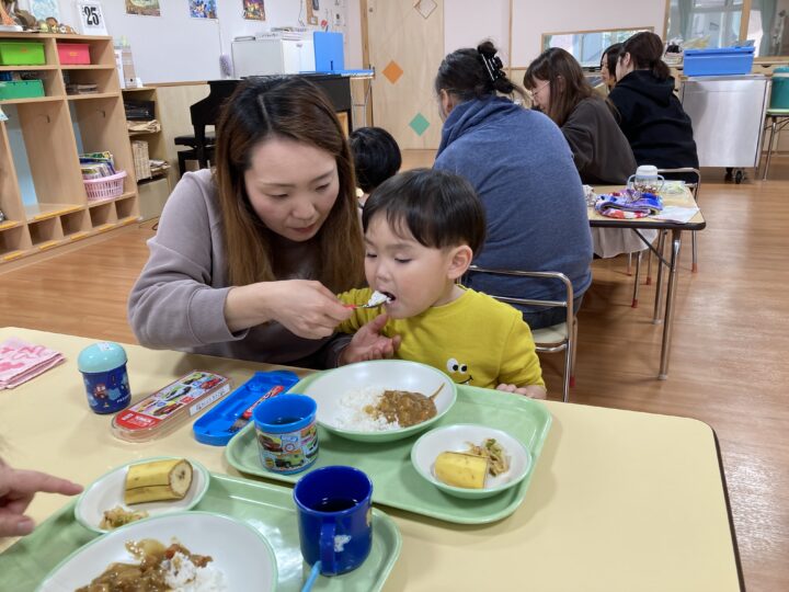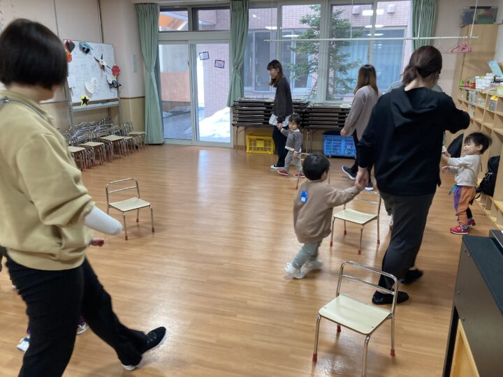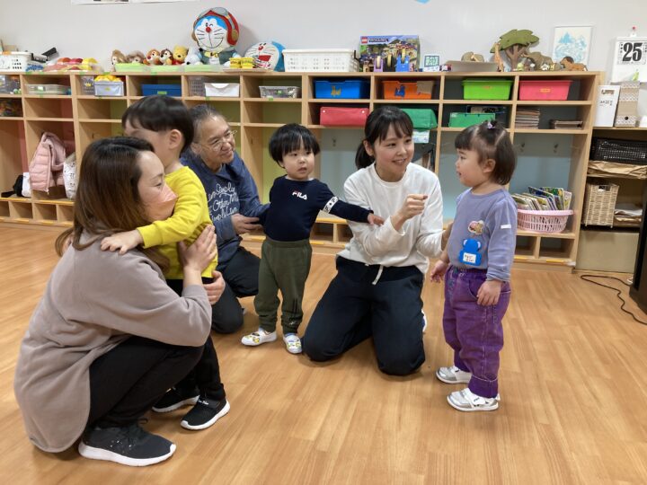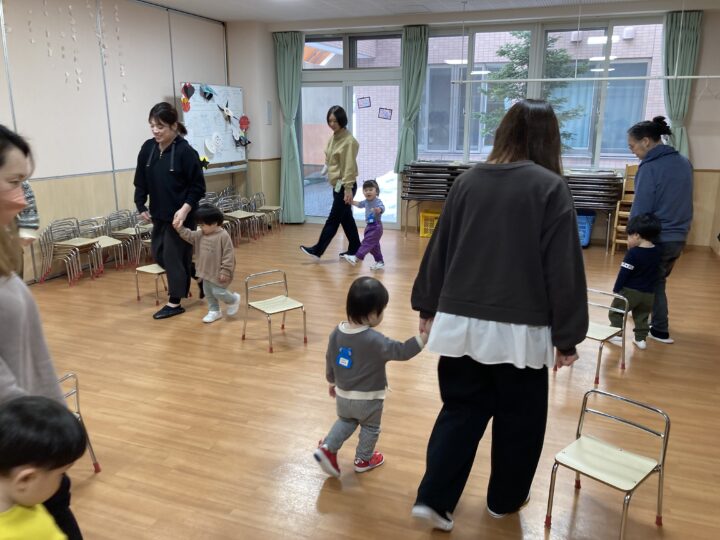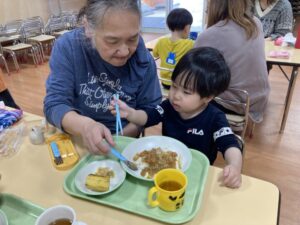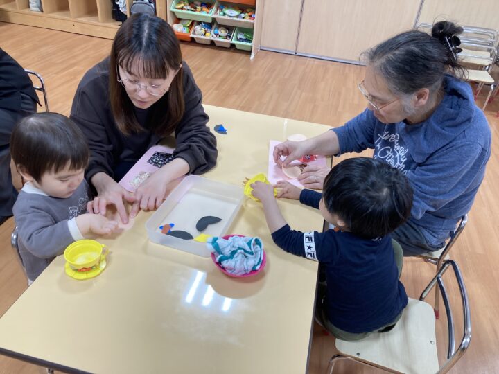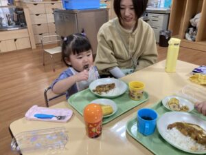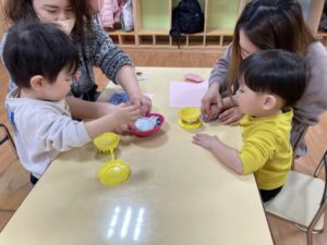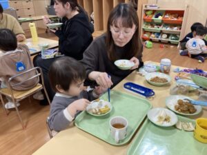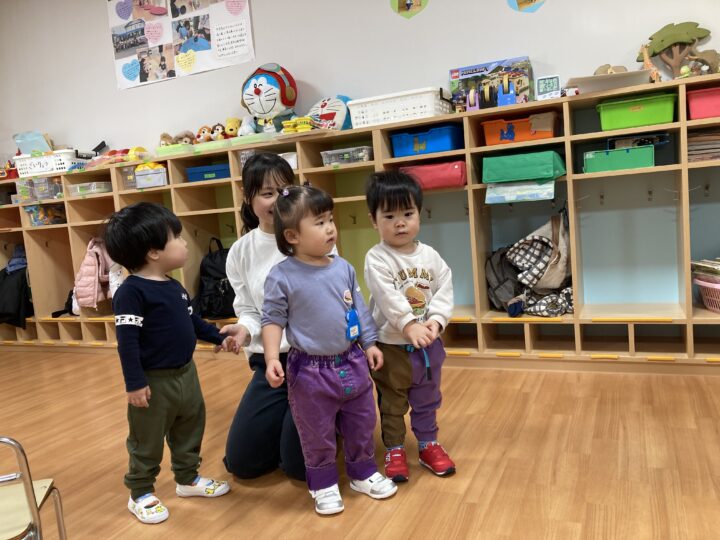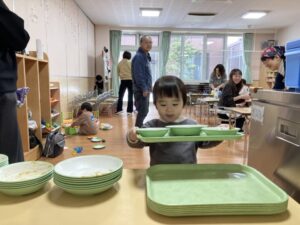 2026.02.25 2月25日(水)ぞうさんくらぶ 今日は、ラッキーイス取りゲームをしました。どの子もルールを理解して、当たって喜んだり、インタビューに答えたり、とても上手にできていましたよ。 折り紙を使って作ったひな祭り製作もそれぞれ違う絵柄で可愛らしく出来ましたね。初めての給食もみんなで美味しく食べる事ができました。