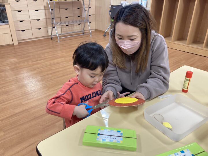 だるまさんの絵本のだるまさん作りをしました。大好きな絵本のだるまさん、じっくり集中して完成していましたね。楽しかったです。